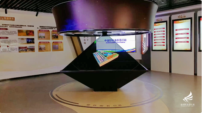 360全息成像技術(shù),頂部藍(lán)天裝飾,以多媒體表現(xiàn)手法,呈現(xiàn)集團(tuán)所屬公司及重點(diǎn)項(xiàng)目發(fā)展。